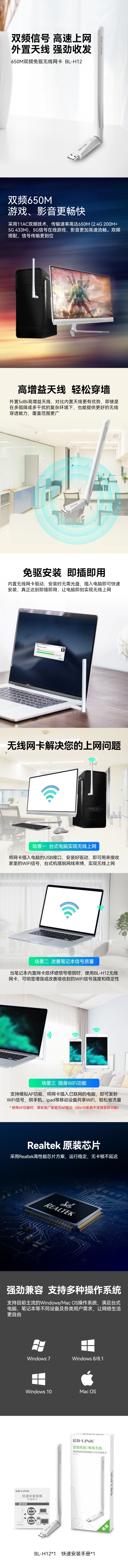 必联 BL-H12 650M 双频高增益无线 USB 网卡