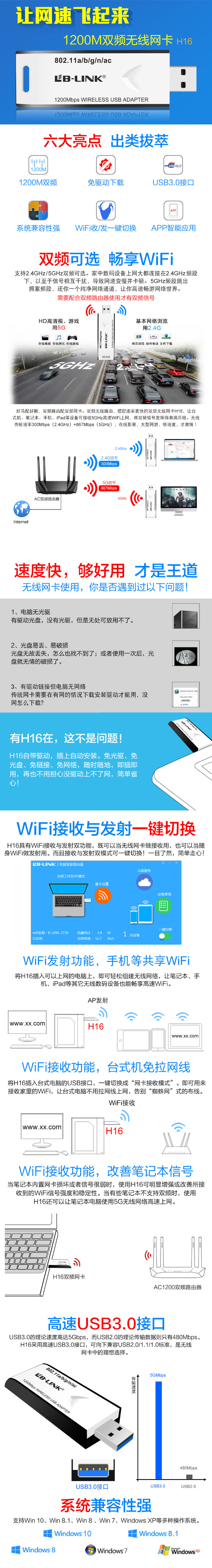 必联 BL-H16 1200M 双频无线 USB 网卡