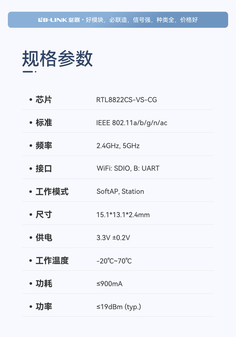 BL-M8822CS1-S RTL8822CS-VS-CG WiFi模组