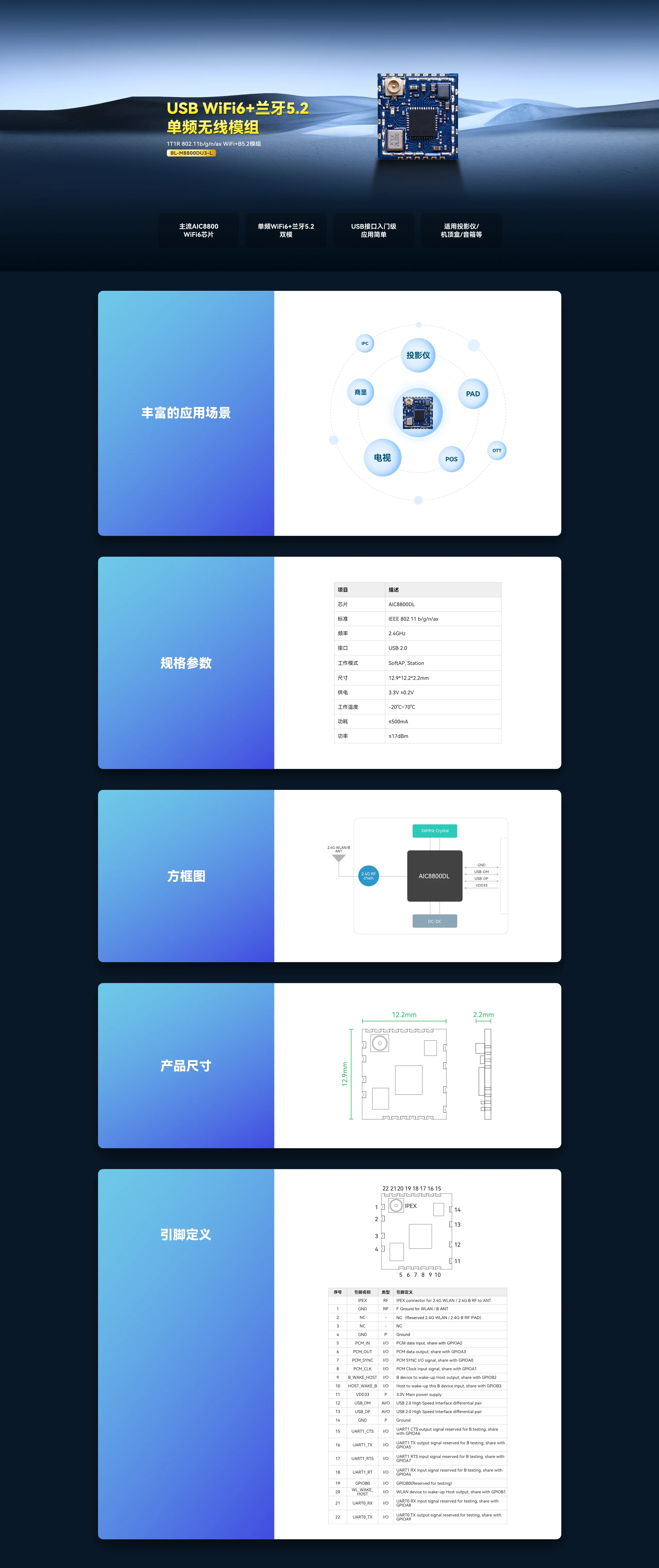 AIC8800DL 芯片 WiFi6+B5.2 模组