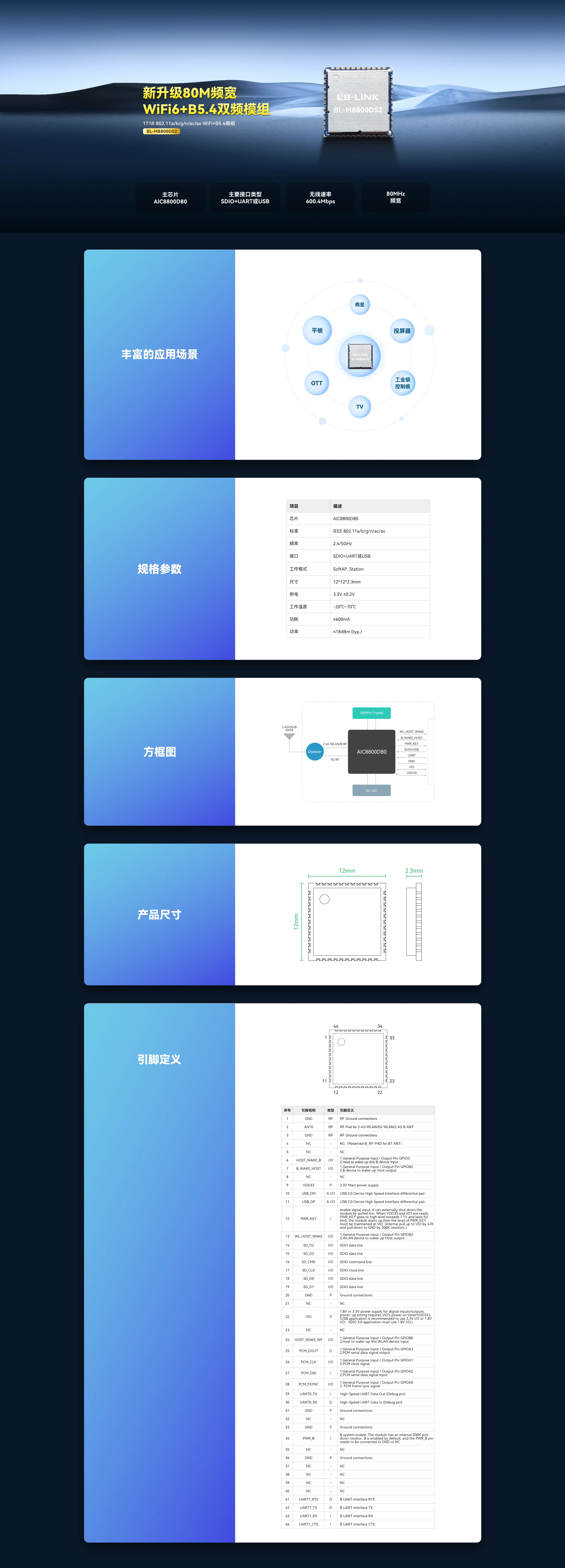 AIC8800D80 芯片 WiFi6+B5.4 模组