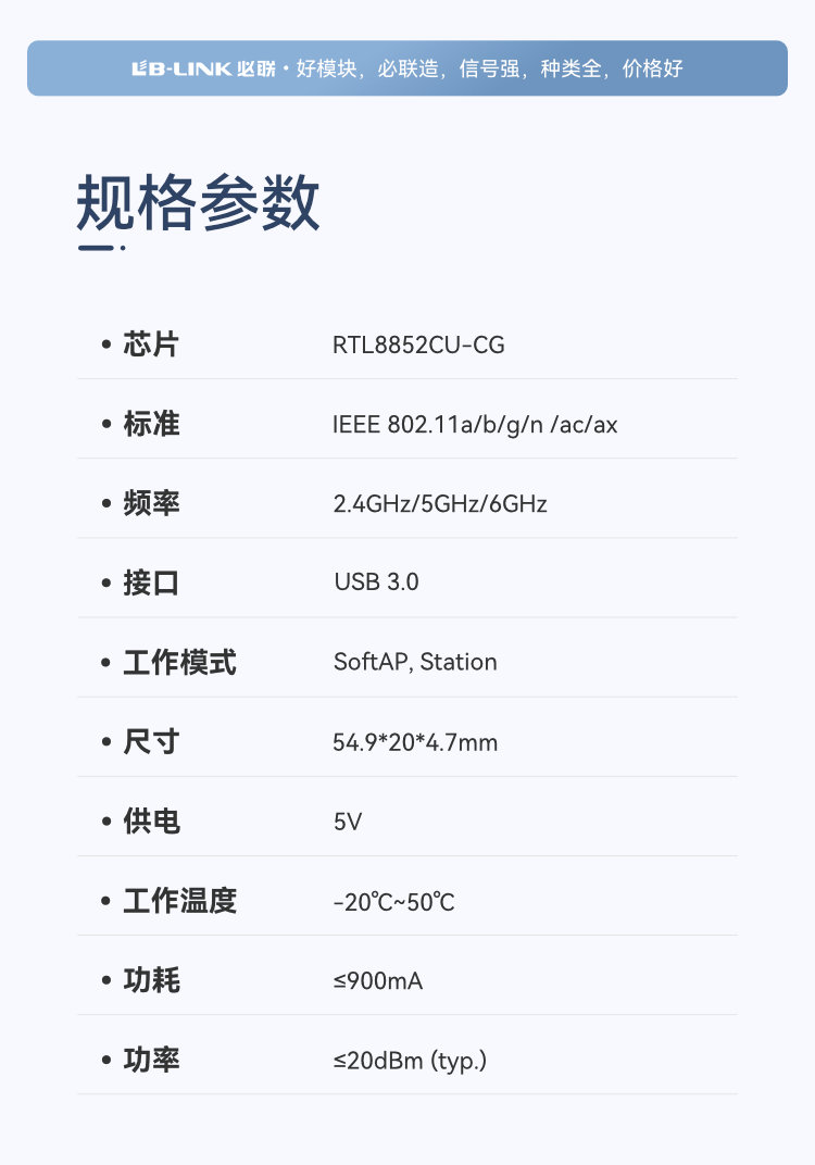 LB-LINK BL-M8852CU1 WiFi6E+B5.2 模组
